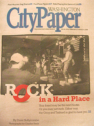 Whoever walks in the Grog’s door later that night will not have read about the show in the Washington Post. Or the Washington City Paper. In the next day’s paper, there’ll be no reviews of the show, no mention of the deer head on the wall, the big cloth butterfly floating over the pool tables, the sweating rock fans crowded into a narrow, smoky room. Word of the performance will have leaked out only through the primitive channels that seem appropriate for the Grog’s throwback look: People will have heard about it from their friends, who will maybe have friends in the band, which will have sent out an e-mail. Maybe the audience will be mostly family.